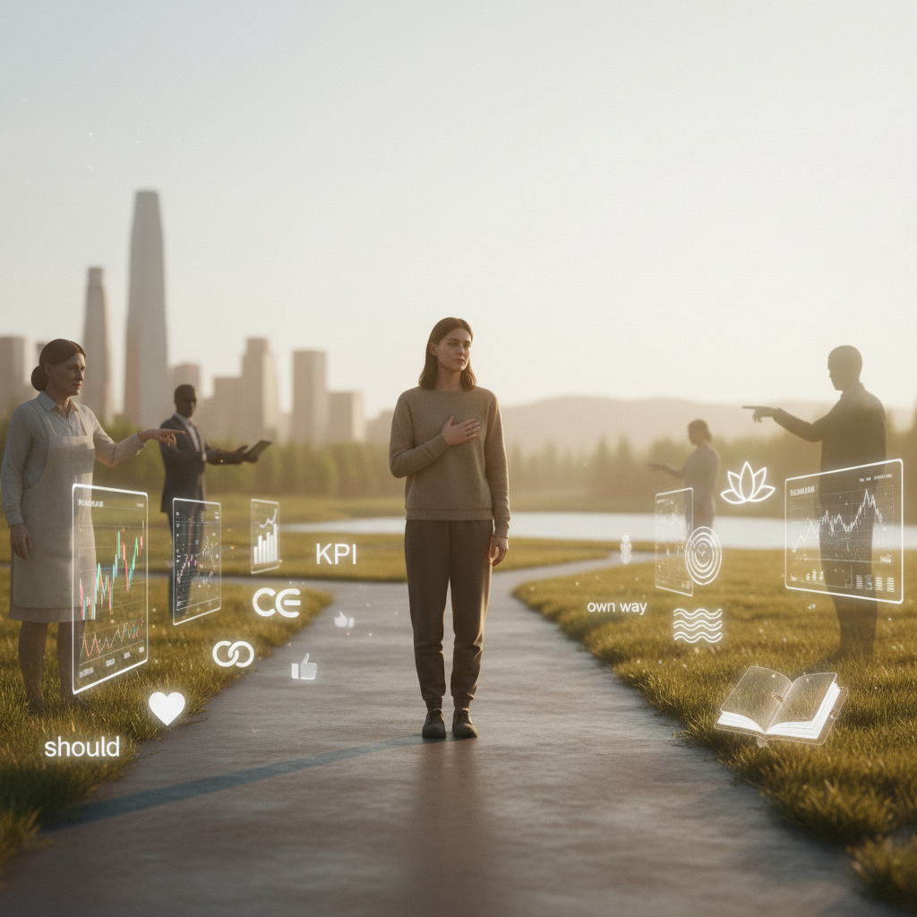 Психологи (и просто честные люди) давно говорят — если гнаться за навязанным, мозг и психика начинают “саботировать”, потом добавляется усталость, депрессия, привычка “бегать от себя”. Всё потому, что наши ценности и желания оказываются в конфликте с “общественно одобренным курсом”.