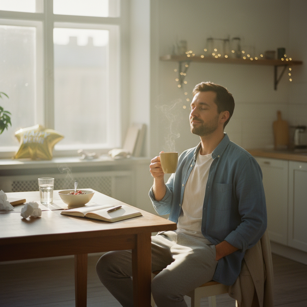Когда я жил в сценарии «будь собранным», любые сбои воспринимались как провал. Постпраздничная апатия — ещё один повод себя ругать. С годами учусь замечать моменты жалости и злости на себя, дышать сквозь них и разрешать себе быть разбитым без ужаса «меня уволят» или «меня не полюбят».