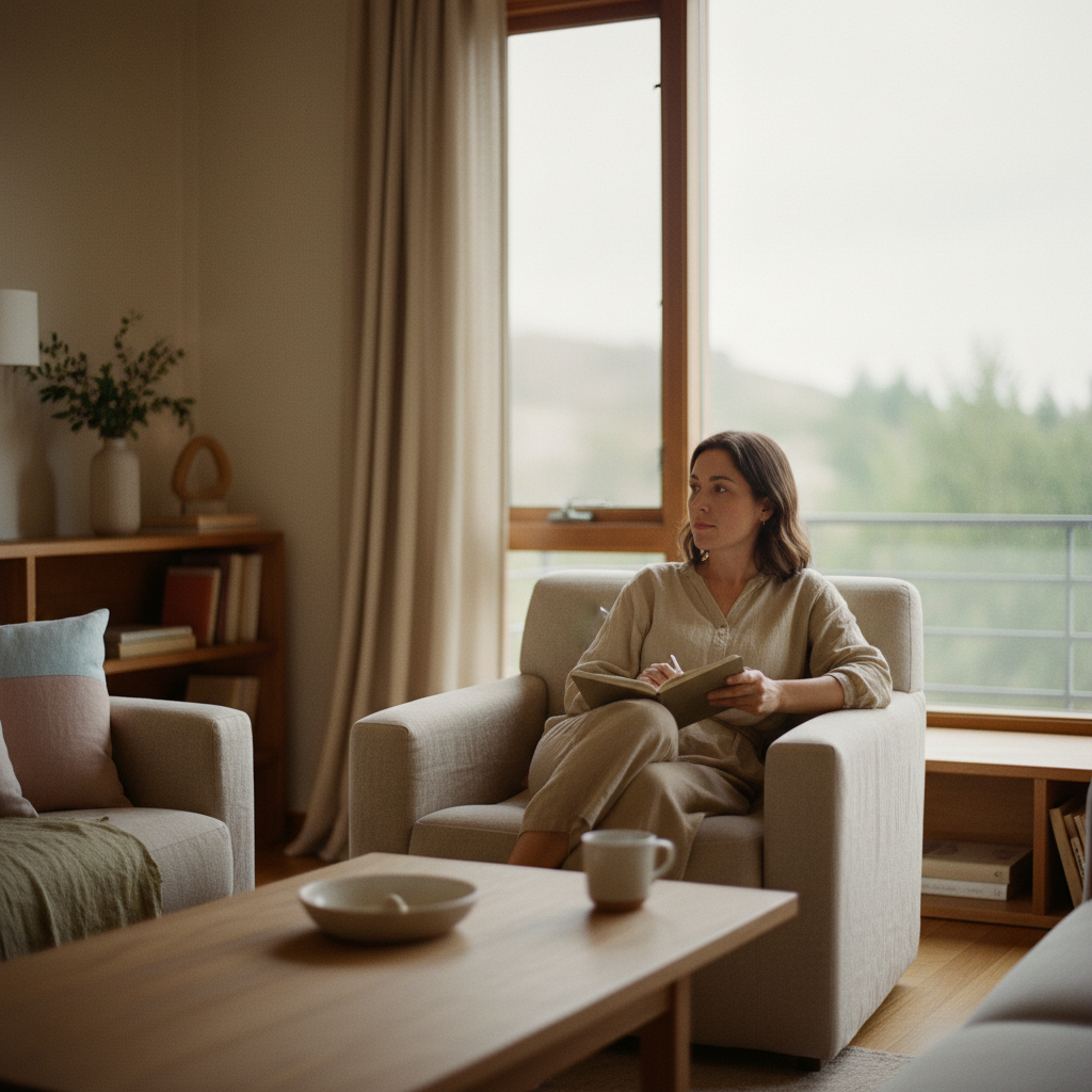 - Делаю короткие осознанные паузы — прямо на работе: выдохнуть, почувствовать стопы, заметить напряжение в плечах.